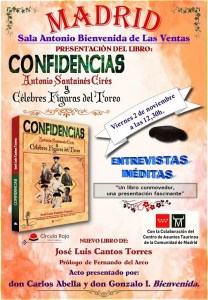 No cabe mayor honor, ni mayor satisfacción, que presentar mi libro CONFIDENCIAS en Madrid y estar arropado por la familia Bienvenida, por la familia de Domingo Ortega y por la familia del Dr. Alfonso Izarra, el cirujano que operó en Valdepeñas a Pepín Martín Vázquez. Muchísimas gracias de todo corazón a María Luisa Bienvenida, Paloma Bienvenida, Gonzalo I. Bienvenida, Fuencisla López Juzgado, a su sobrino, a María Luisa Izarra, a su marido Pedro Cintas, a su hija e hijo y su pequeño nieto, a todos ellos mis más sincero agradecimiento y a don Carlos Abella darle mil gracias por ser tan atento y cordial conmigo, su generosidad siempre será para mí, un agradable motivo de agradecimiento. Mi agradecimiento al Centro de Asuntos Taurino de la Comunidad de Madrid, a su Director Gerente don Manuel Ángel Fernández. Agradecer a su afectuosa atención en todos los trámites para la solicitud a Paloma Arrones y Manuel Alonso su amable ayuda con el montaje técnico del acto.